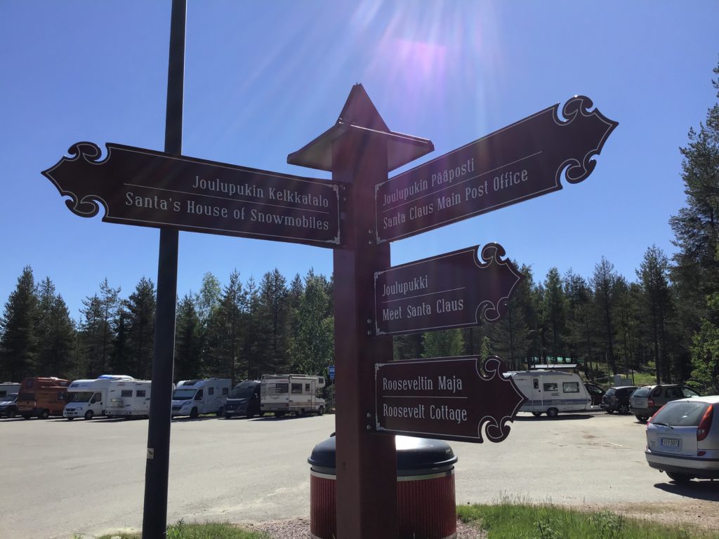 The first goal! We have crossed the Arctic Circle on June 15th, 2019. A white line is painted across the park Santa Claus Village. You can take pictures when you cross the line in the park. On the left side the sun will never sets, and you can see the sun 24 hours. It’s crazy to see – we sat by the lake at night, and the sun was shining!